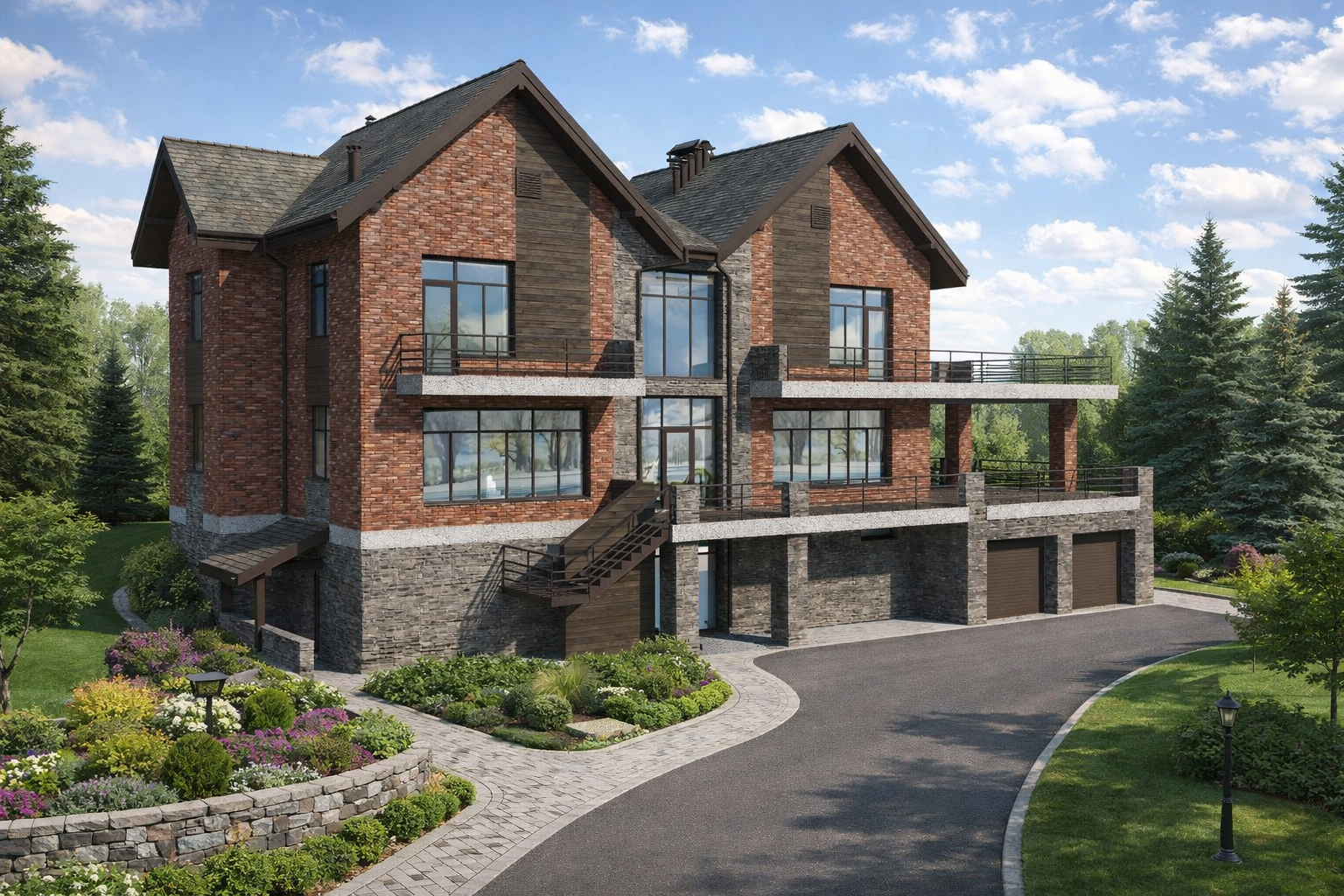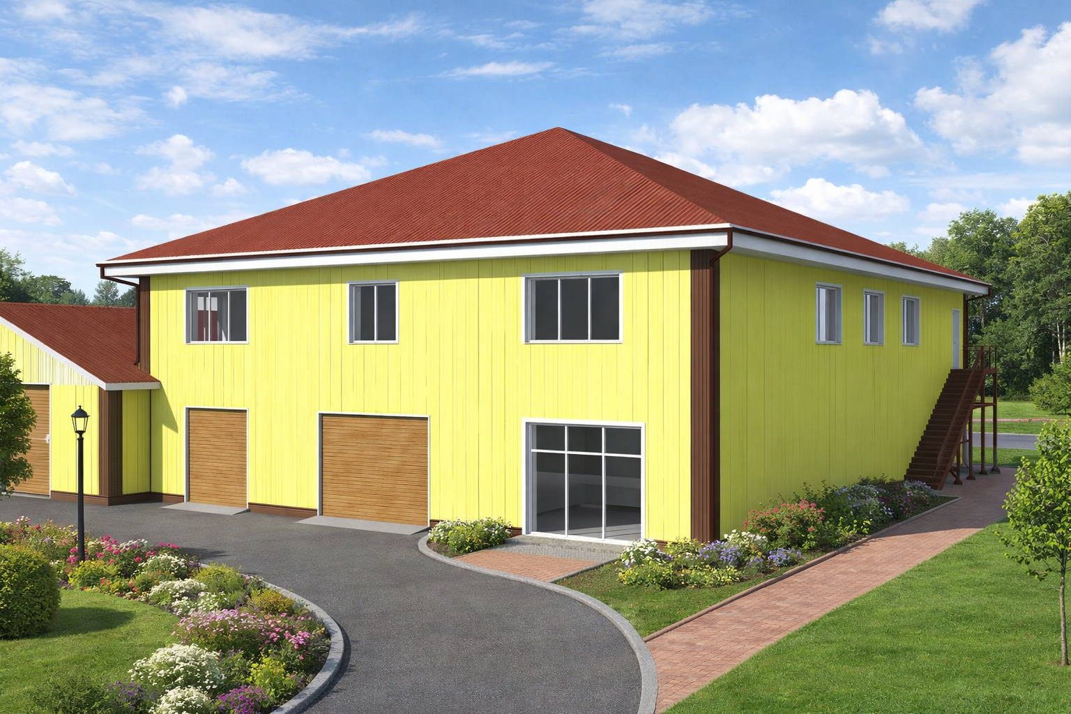 Еще одно преимущество заказа индивидуального проекта дома – это возможность создания подробной визуализации его внешнего вида. На этом этапе можно визуально оценить как в итоге будет выглядеть уже полностью завершенный проект. Это очень удобно когда вы не уверены в каком стиле нужно выполнить постройку в уже существующем комплексе строений. Здесь мы приводим пример визуализации дома одного из наших клиентов