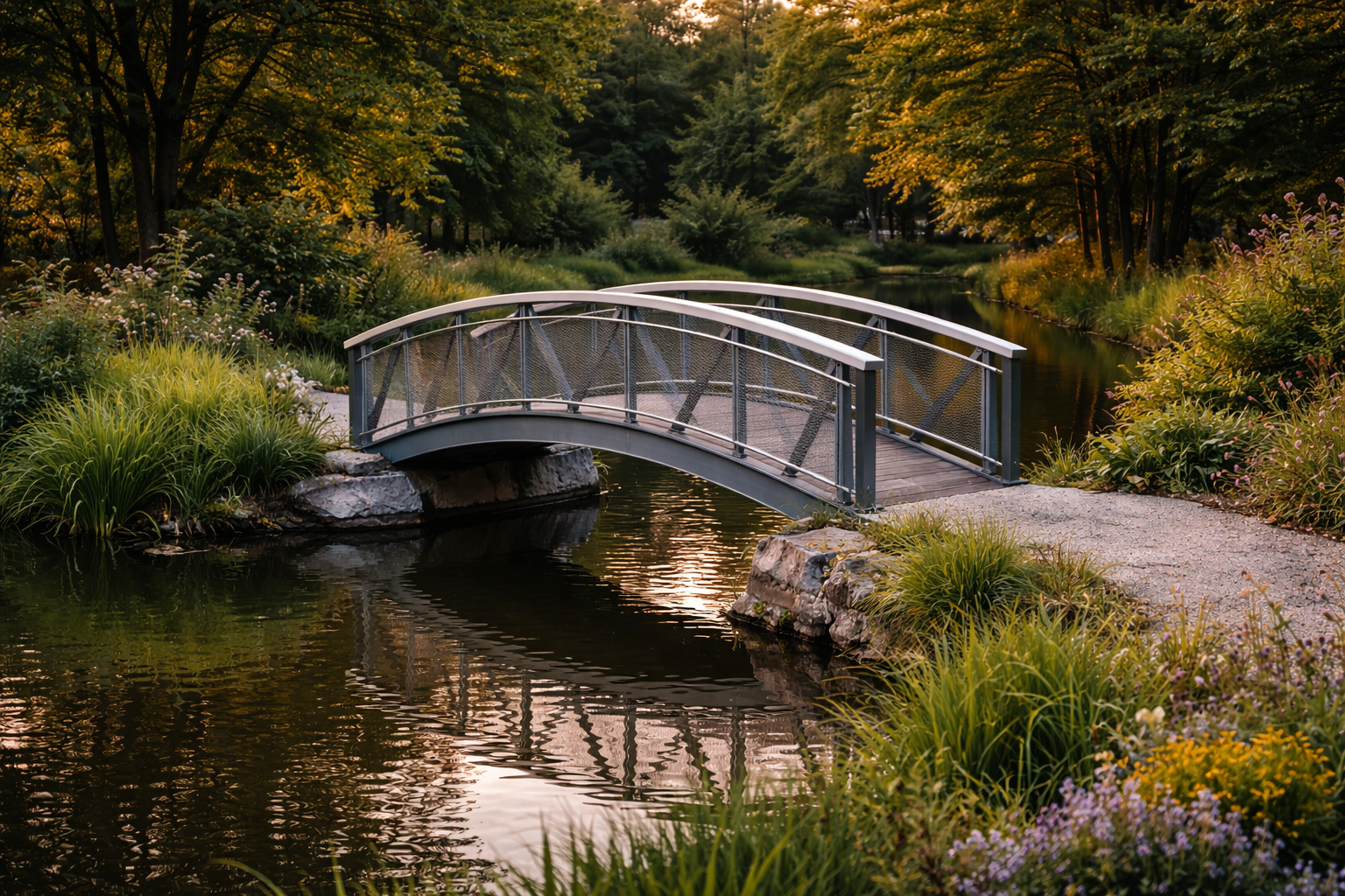 Соедините берега вашего пруда, создайте эффектный переход через сухой ручей или просто добавьте ландшафту завершенности с помощью стильных и надежных мостиков. Мы изготавливаем конструкции любой сложности по вашим размерам: от лаконичных прямых моделей до ажурных арочных мостов для вашего сада. Используем прочный металлокаркас и долговечные покрытия (полимерная порошковая окраска, деревянный настил). Гарантируем устойчивость к коррозии, высокую нагрузку и безупречный внешний вид, который будет радовать вас долгие годы.