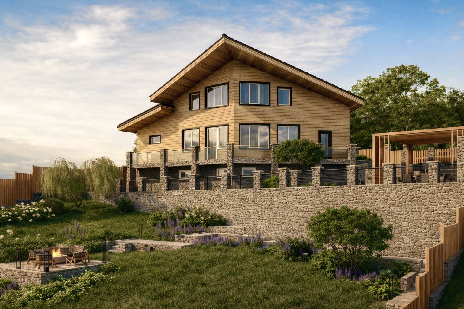 Наружные стены цокольного этажа – выполнены многослойными. Несущие стены дома – кладка из