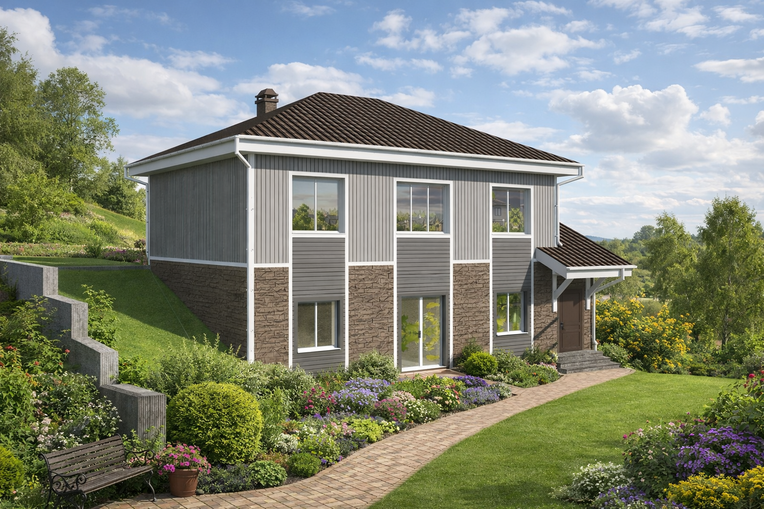 толщиной 240 и 400мм (либо сборные 150 и 240мм), утеплением минплитой 50мм и облицовкой сайдингом.