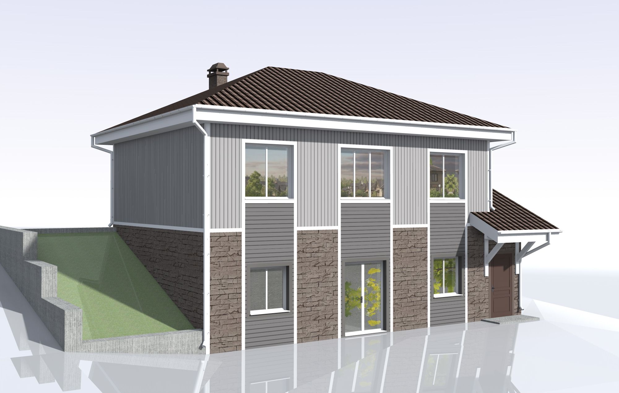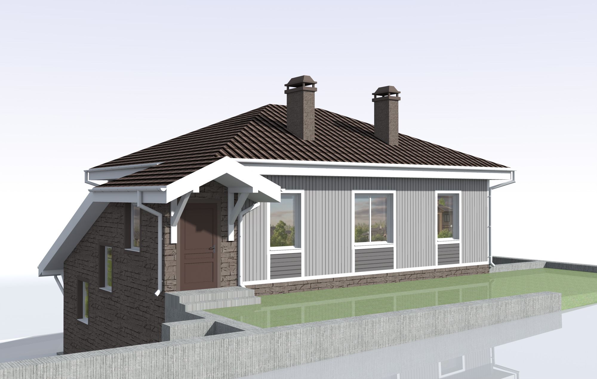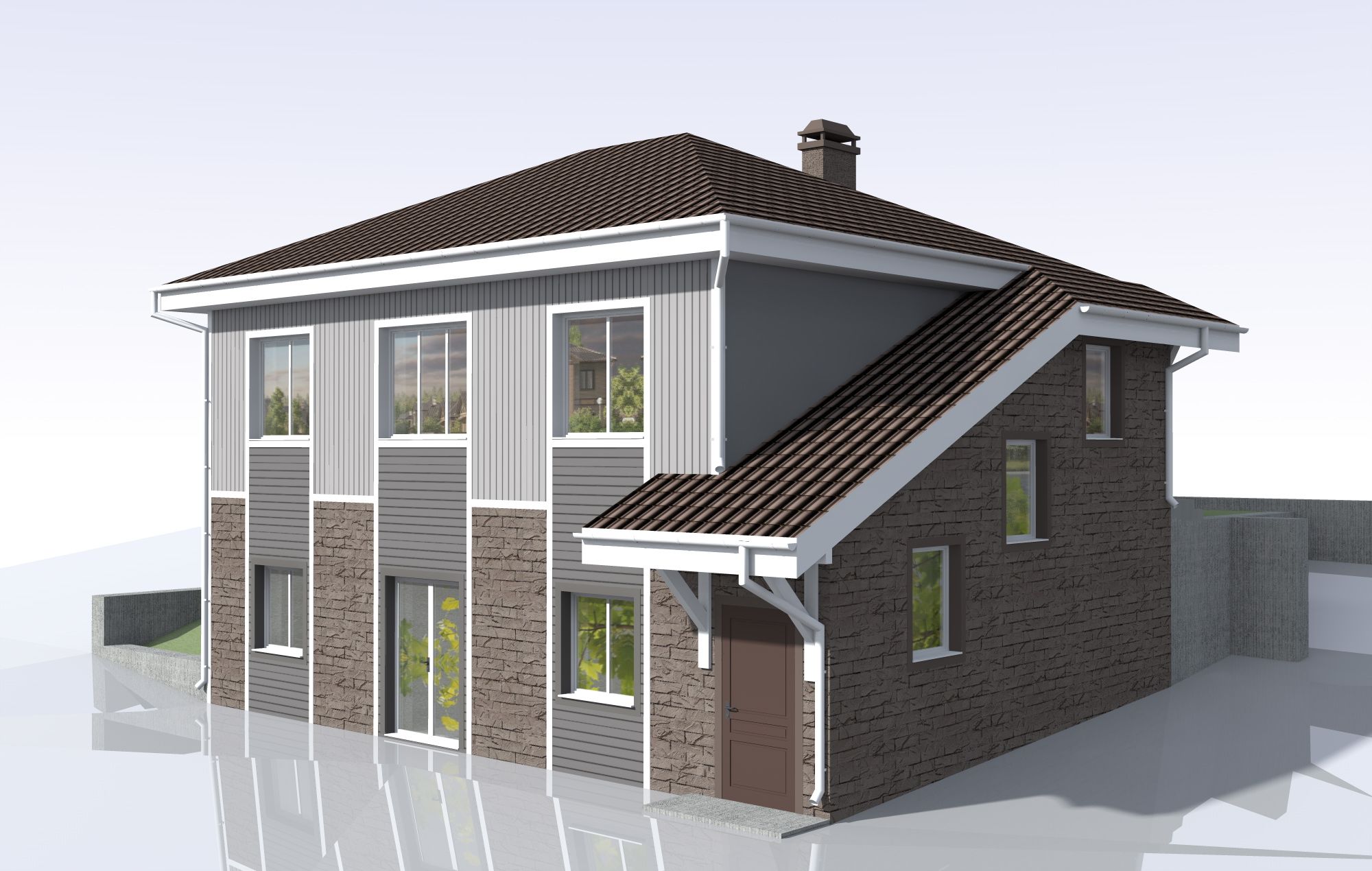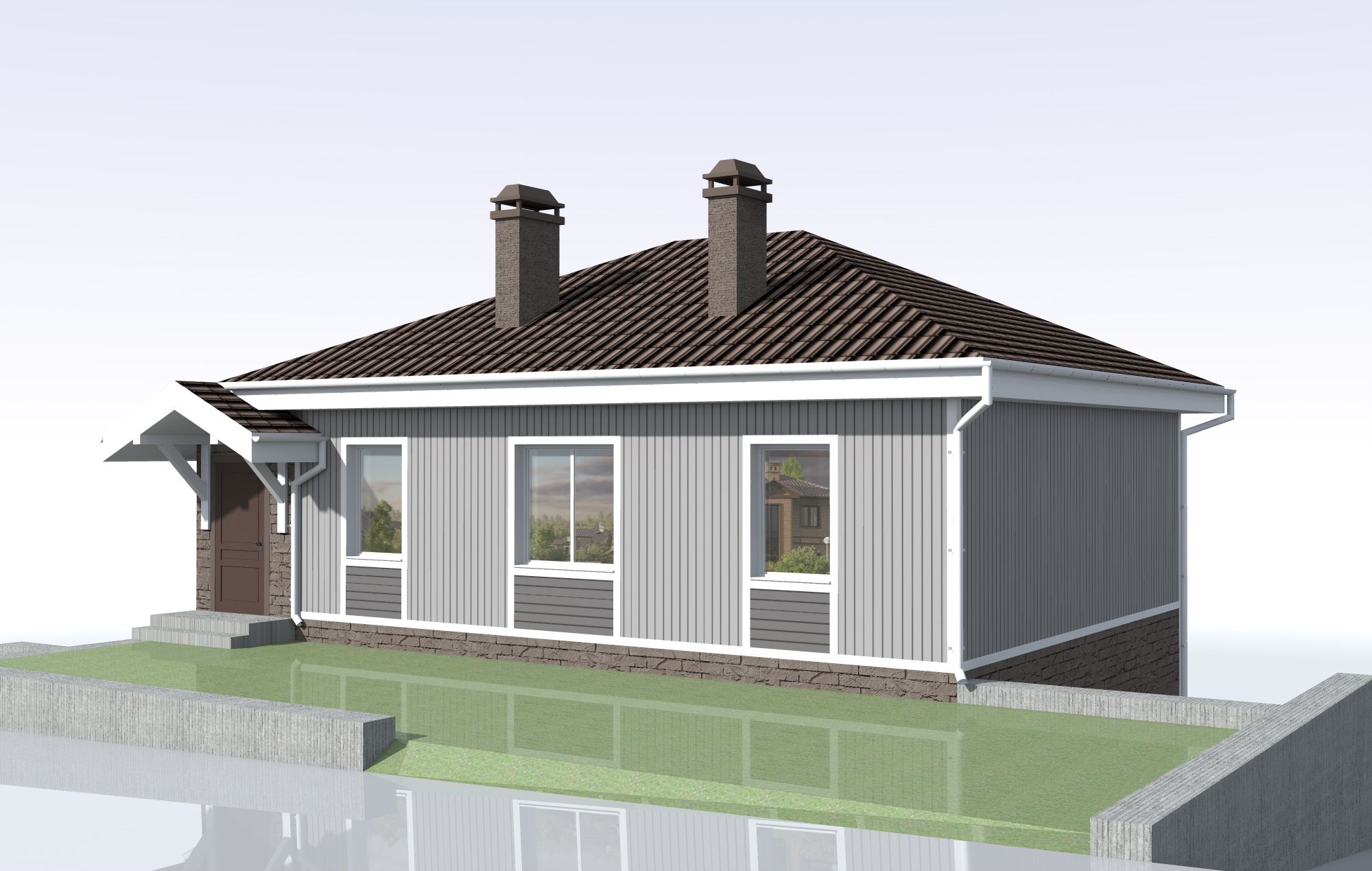 Крыша – вальмовая с организованным водостоком, крытая металлочерепицей.