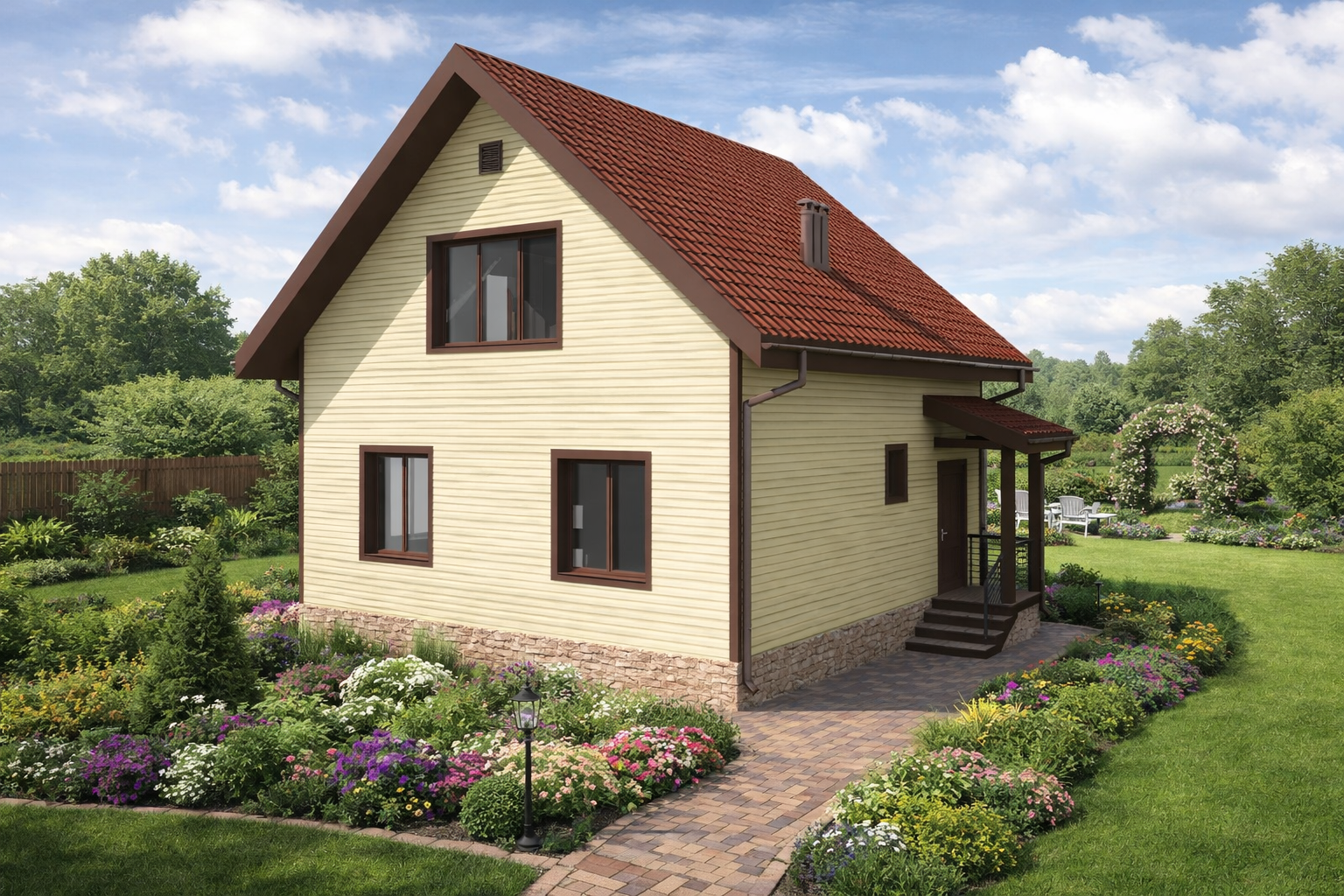 Согласовываем посадку дома на участке, планировку, внешний вид — это занимает несколько дней. Сроки могут увеличиться в зависимости от степени детализации и объема проекта. Бесплатно проектировщик может нарисовать до 5 планировок, пока вас всё не устроит.